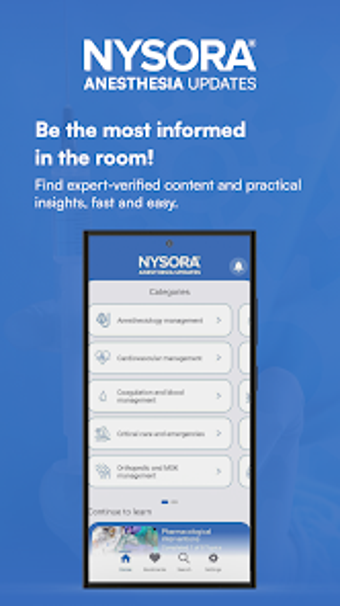 이 애플리케이션은 바쁜 전문가를 위해 맞춤형 간결한 요약을 제공하는 전문가 검토 콘텐츠를 특징으로 합니다. 여기에는 수술 전후 의학, 중환자 치료 및 통증 관리와 같은 다양한 주제가 포함됩니다. 앱의 사용자 친화적인 인터페이스는 쉬운 탐색을 가능하게 하여 관련 정보에 빠르게 접근할 수 있도록 합니다. 거주자, 펠로우 및 경험이 풍부한 마취과 의사 모두에게 이상적인 NYSORA 마취 업데이트 앱은 학습 과정을 단순화하여 사용자가 시간을 절약하면서 임상 지식을 향상할 수 있도록 돕습니다.